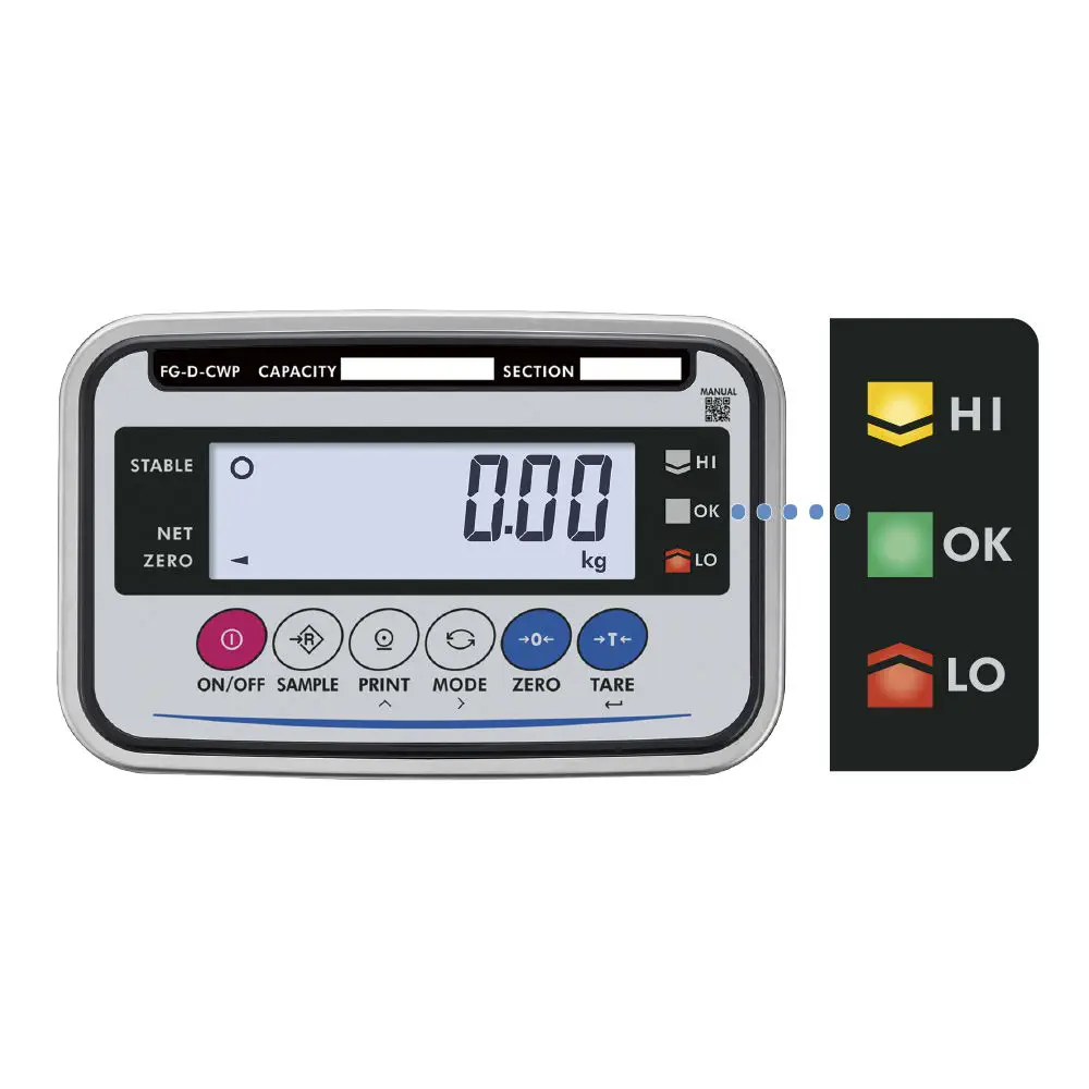 多彩LED比較燈: 具有明亮的多彩LED比較燈,幫助用戶快速判斷稱重結果。